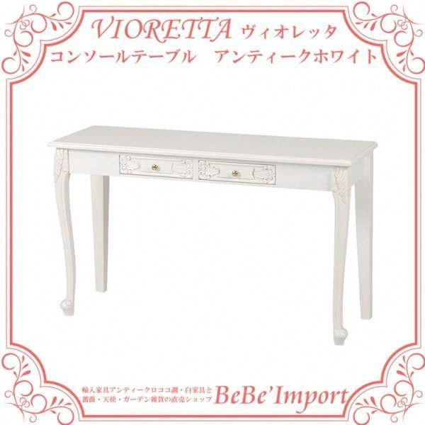 ヴィオレッタ コンソールテーブル アンティークホワイト ヨーロピアン 姫系 ロココ調 インテリア アンティーク調