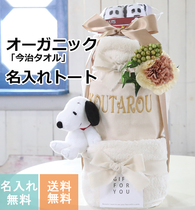 おむつケーキ スヌーピー オーガニックタオル 今治ハンドタオル SNOOPY 男の子 女の子 名入れトート 出産祝い おしゃれ オムツケーキ 送料無料