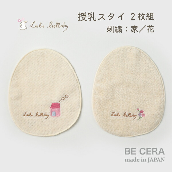 ・素材…綿100%%・カラー…オフホワイト・サイズ…たて17.5×よこ14.5cm・原産国…日本製・授乳時や離乳食時に、お洋服やスタイの襟元にサッと挟み込むだけ! ヨダレやミルク、吐きもどしなどを肌触りの良いタオルで優しく拭き取れます。 お花とおうちの刺繍がとってもキュート♪