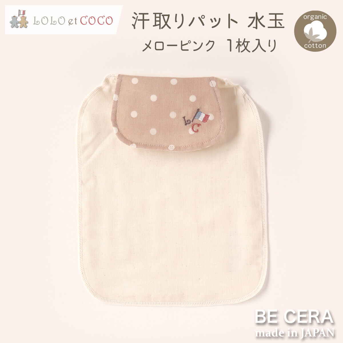 LOLO et COCO 赤ちゃん 背中 汗取りパット 1枚入り 水玉 ピンク ベージュ 4重ガーゼ オーガニックコットン 超長綿 吸水加工 出産祝 かわいい 日本製 女の子