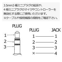 片側:3.5mm3極ステレオミニジャック×1 (オス)、片側:3.5mm4極ステレオミニジャック×1 (メス)、金メッキ加工