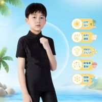 (Nesseo) ラッシュガード 半袖 キッズ 水着 スイムウェア 水陸両用 スイム シャツ 男の子 女の子 紫外線対策 日焼け予防 ハイネック 速乾 プール 海 サーフィン 112kid-blk-blk-150
