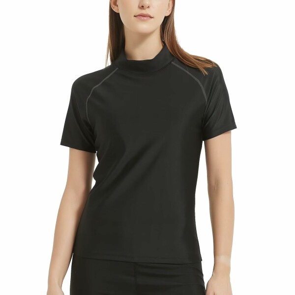 (Nesseo) ラッシュガード 半袖 レディース 水着 スイムウェア 水陸両用 スイム シャツ 紫外線対策 日焼け予防 ハイネック 速乾 プール 海 サーフィン 112-blk-gr-M
