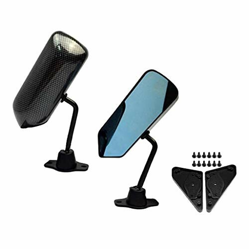 Flameer ユニバーサルF1ブラインドスポットーシング車サイドバックミラー、ブルーガラスとカーボンファブリック表面
