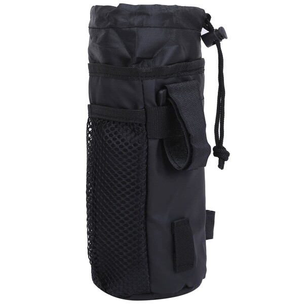 ハンドルバーにつける自転車用ドリンクホルダー です。水筒、ボトル、ペットボトルに対応しています。口は巾着型で、小型のハンドルバーバッグにもなります。