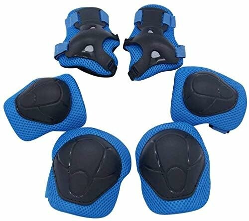 キッズプロテクター スポーツプロテクター 膝/肘/手首 保護パッド スケボースケボー インラインスケート ローラースケート 自転車 スケートボード 子供用 キックボード 保護に 専用収納袋付き(ブルー 6点セット )