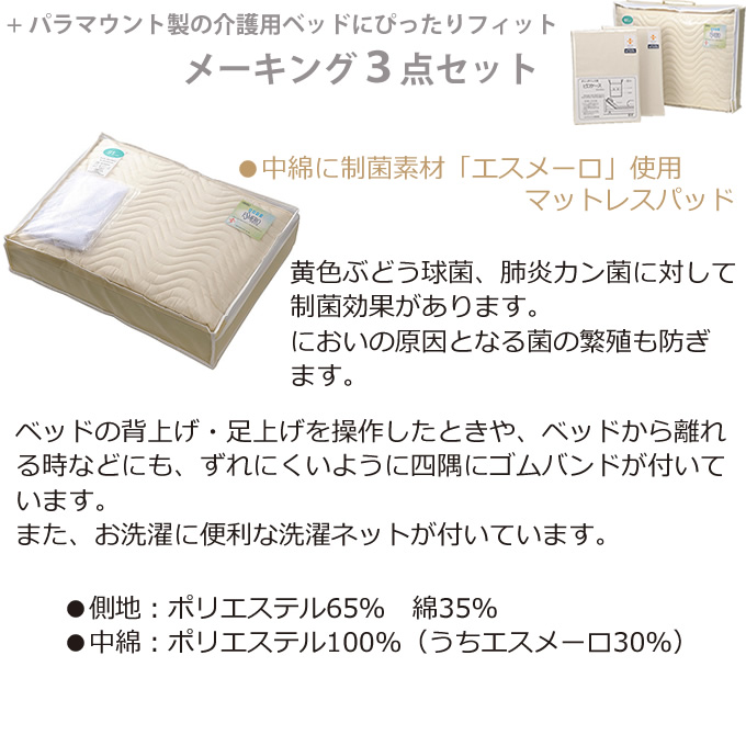 ●メーキング 3点セット(マットレスパッド・ボックスシーツ・ピローケース)