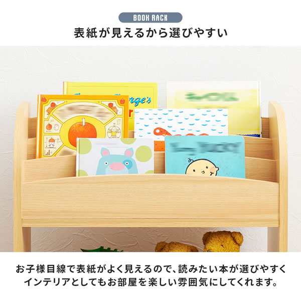 絵本ラック 絵本棚 表紙が見える 絵本収納 オープンラック 子供部屋家具 キッズ家具 木製ラック シンプルデザイン おしゃれ家具 リビング収納 子供用ラック 安心設計 コンパクト収納 幅スリム 薄型ラック 見せる収納 ナチュラルインテリア