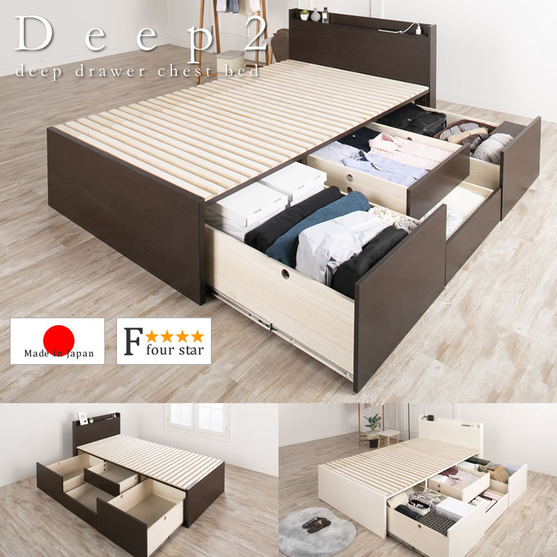 セミオーダー収納ベッド|奥深引き出し×スリム棚付き|省スペースでも便利に使える 日本製 チェストベッド Deep2