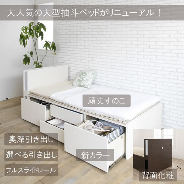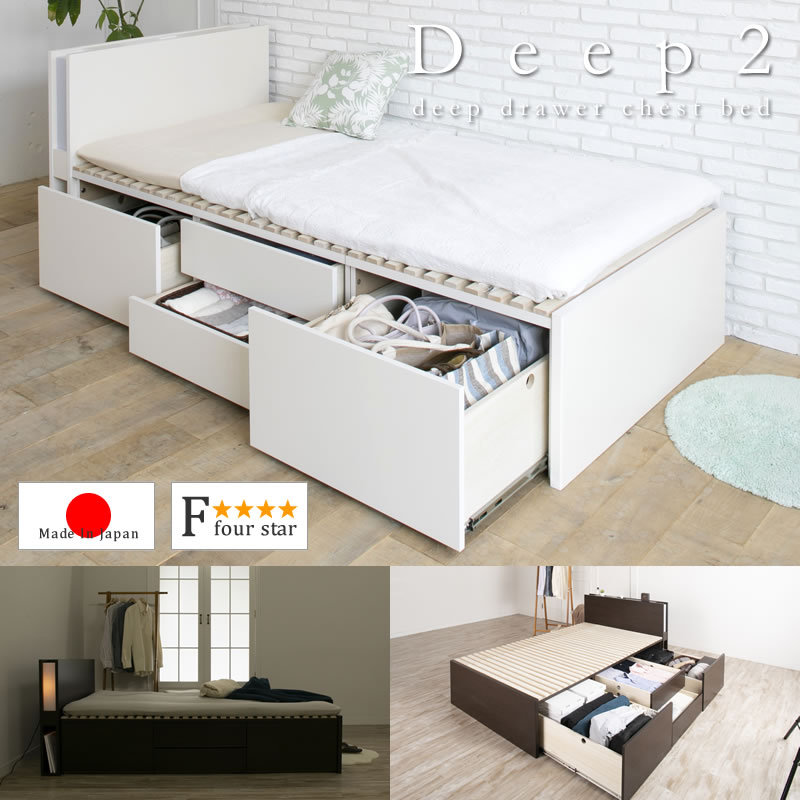 セミオーダー収納ベッド|照明付き×奥深引き出し×日本製|便利なライト付きチェストベッド 搬入付き Deep2