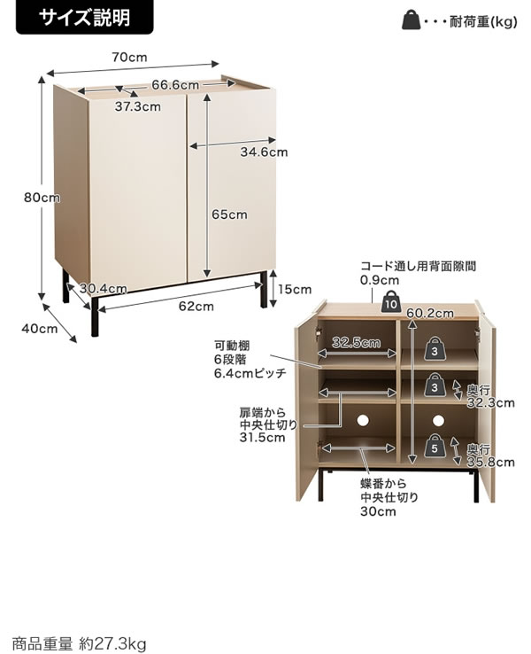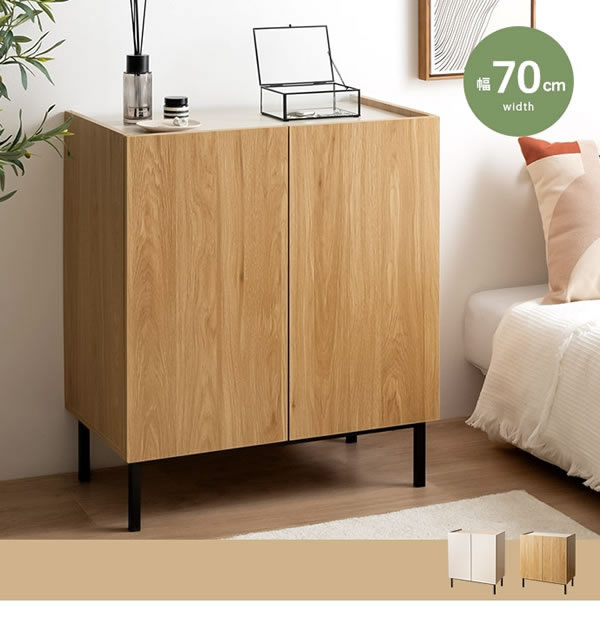 キャビネット 幅70cm 省スペース収納 おしゃれ リビング 木目×グレージュ A4対応 ルーター収納 脚付き