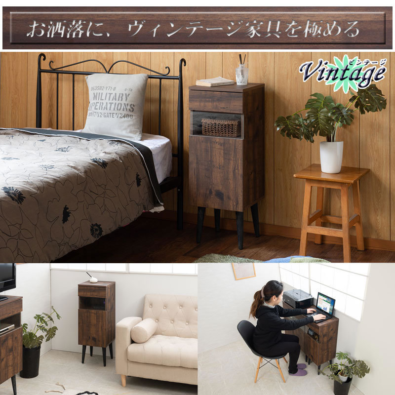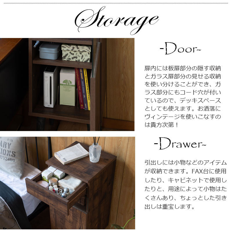 電話台 ルーター収納 キャビネット おしゃれ スリム ヴィンテージ 幅30 アンティーク家具