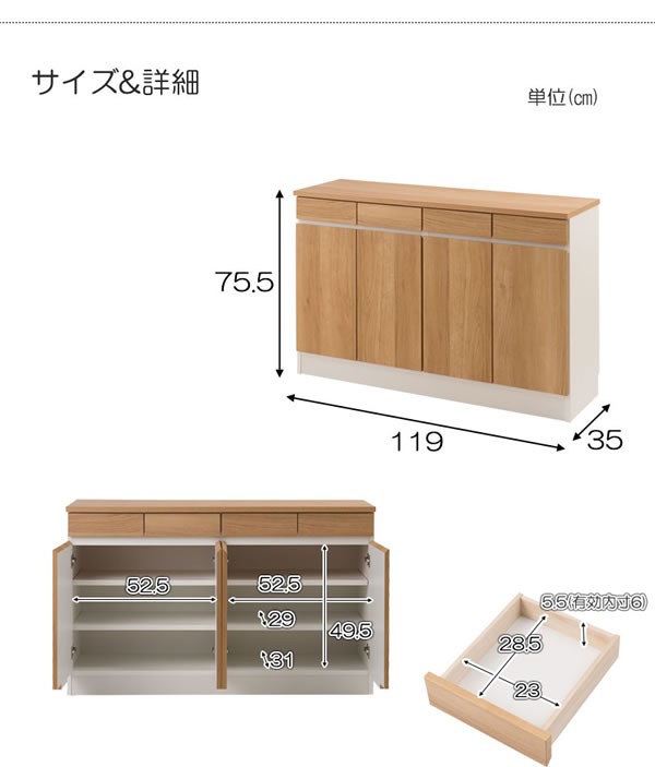 ■商品サイズ/本体:(約)幅119×奥行35×高さ75.5cm