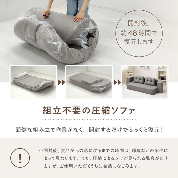 ソファベッド 2人掛け ローソファ 圧縮ソファ 省スペース ウレタン 軽量 組立不要 クッション付き