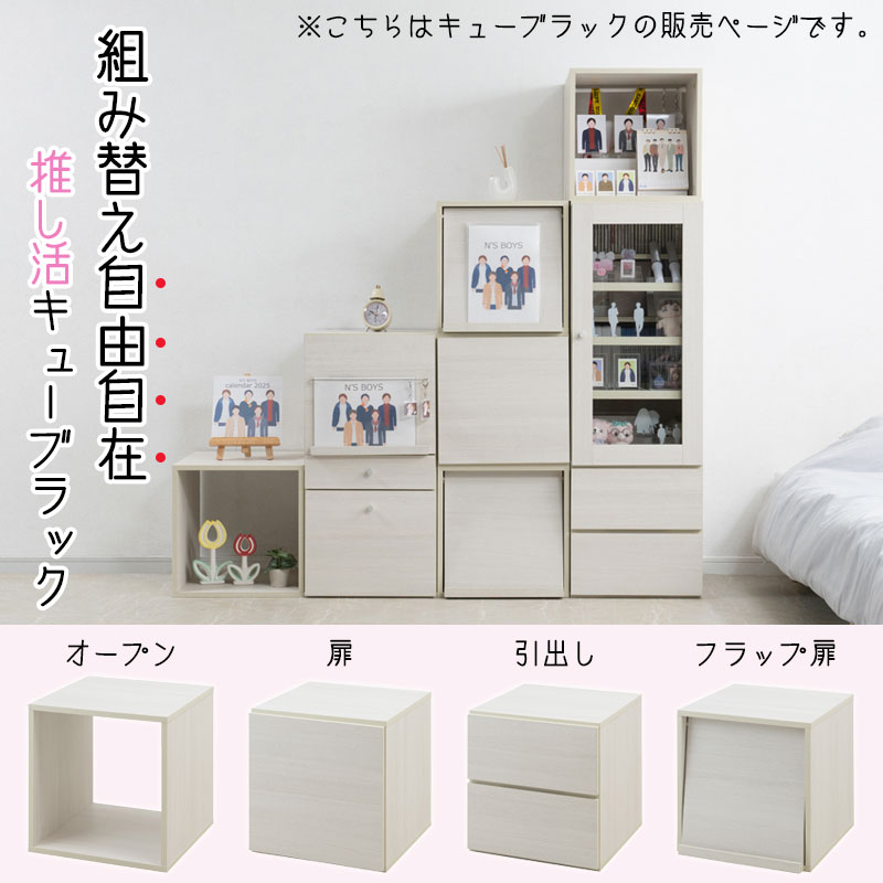 推し活 グッズ 収納 キューブラック 推しピの推し入れ オープン 扉 引き出し フラップ 木目調 ホワイト おしゃれ 組み合わせ自由 キューブ型 オタ活 女子部屋