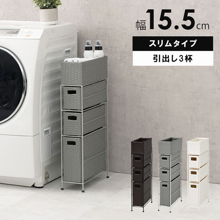 ランドリー 幅15cm 収納 スリム 隙間 薄型 ラック 隙間収納 引き出し3杯 洗濯ラック