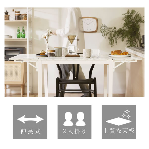 生活スタイルに合わせて簡単に天板が広がる伸長式のテーブル。