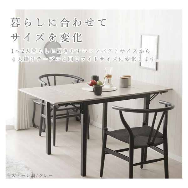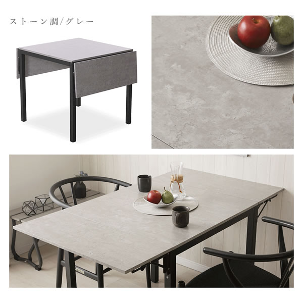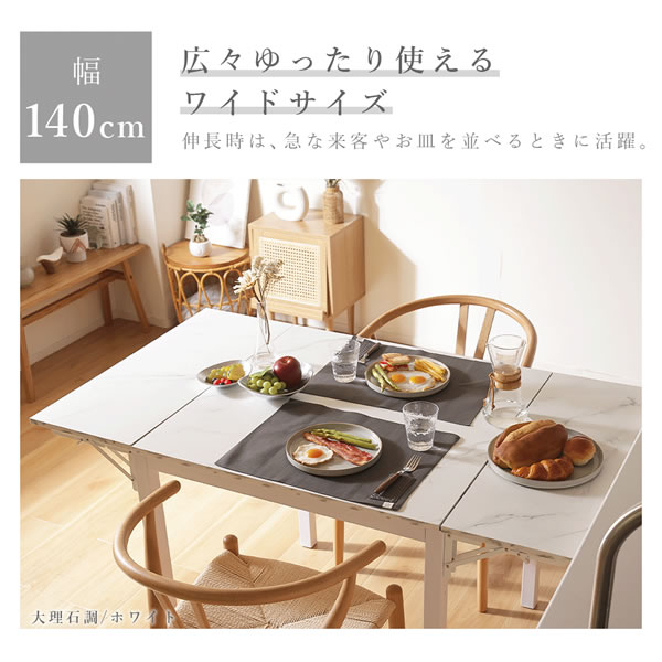 伸長式ダイニングテーブル 幅87-140cm|バタフライテーブル/大理石調・ストーン調/スチール脚/コンパクト収納&来客対応