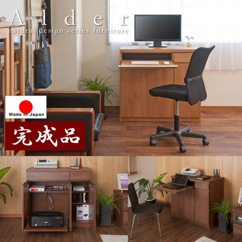 PCデスク キャビネット 90cm 天然木 アルダー 日本製 完成品 ナチュラル パソコンラック