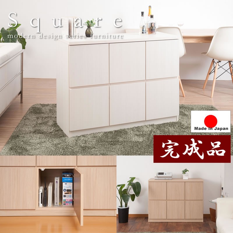 リビングチェスト キャビネット 収納 扉タイプ 完成品 日本製 安い 強化紙 モダン スクエア 幅104.5