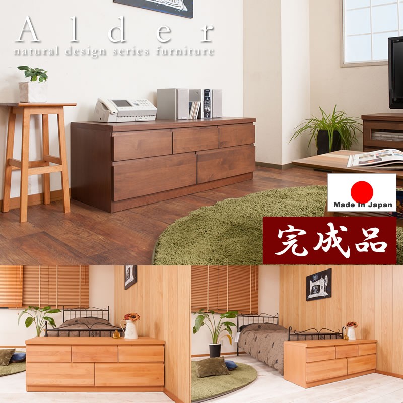 タンス ローチェスト 幅120cm ベンチタイプ 天然木 アルダー 国産 完成品 北欧風 おしゃれ