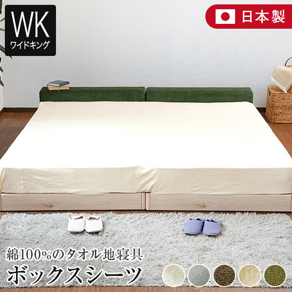 ボックスシーツ ワイドキング 200×200×35cm 綿100% タオル地 日本製 Cotor コトル ふんわり コットン マットレスカバー