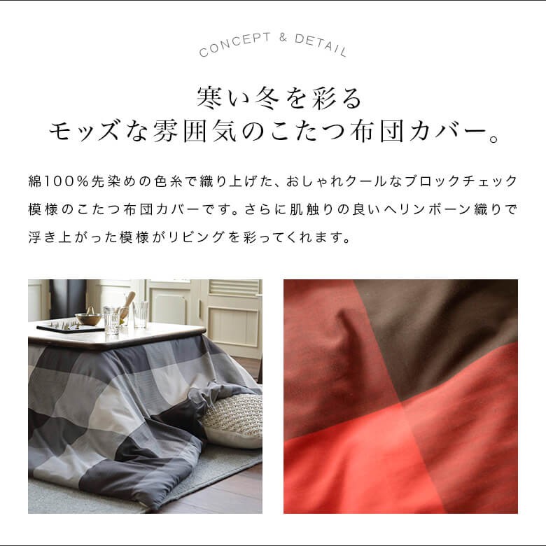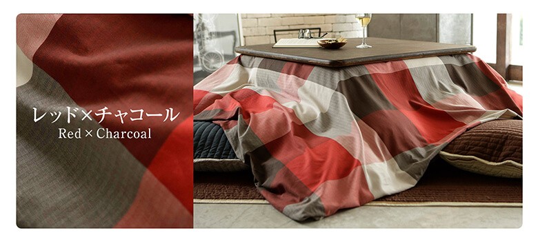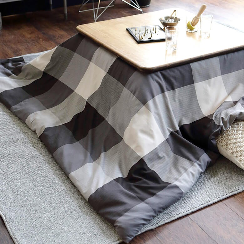 正方形:200×200cmのこたつ布団をすっぽり包むカバーです。裏面中央にファスナーがあるので、邪魔になりません。
