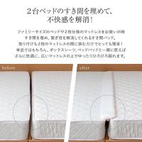 クイーンサイズ・キングサイズ2枚仕様、またマットレスを2枚並べて連結したい場合に隙間を埋め、繋ぎ目を解消する隙間スペーサー(隙間パッド)です。伸縮性のあるウレタンがマットレスの枠線の違和感解消します。2枚のマットレスの連結に、この隙間スペーサーを取り付け、その上に ベッドパッド、さらにボックスシーツを取り付けてご使用ください。