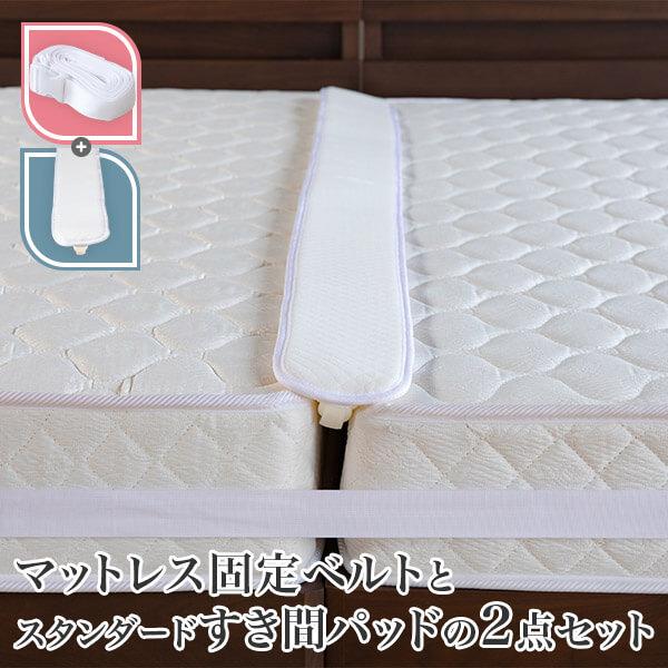 マットレス固定ベルトとすき間パッド(スタンダードタイプ)の2点セット マットレス ズレ 防止 ずれ防止 隙間 つなぎ目 一体化 連結バンド すき間スペーサー