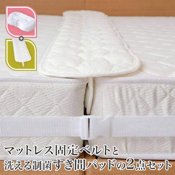 マットレス 固定ベルト + すき間パッド ( 洗える 制菌 速乾 ) 2点セット ベッド 隙間 つなぎ目 埋める ズレ防止 2台ベッド 連結