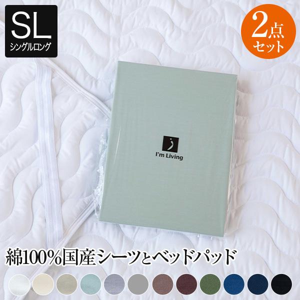 寝具セット 2点 シングルロング ベッド用 12色から選べる国産シーツと洗えるベッドパッド