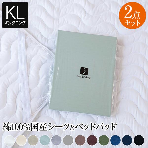 寝具セット 2点 キングロング ベッド用 12色から選べる国産シーツと洗えるベッドパッド
