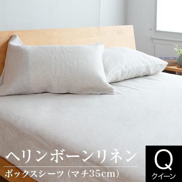 ボックスシーツ クイーン 麻100% フレンチリネン ヘリンボーンリネン 160×200×35 ヘリンボーン織 洗える オールシーズン マットレスカバー