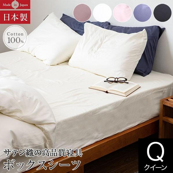 ボックスシーツ クイーン 綿100% サテン織 日本製 ラムコ Ramco 160×200×27cm ハイブリッドコットン インド綿 超長綿 マットレスカバー