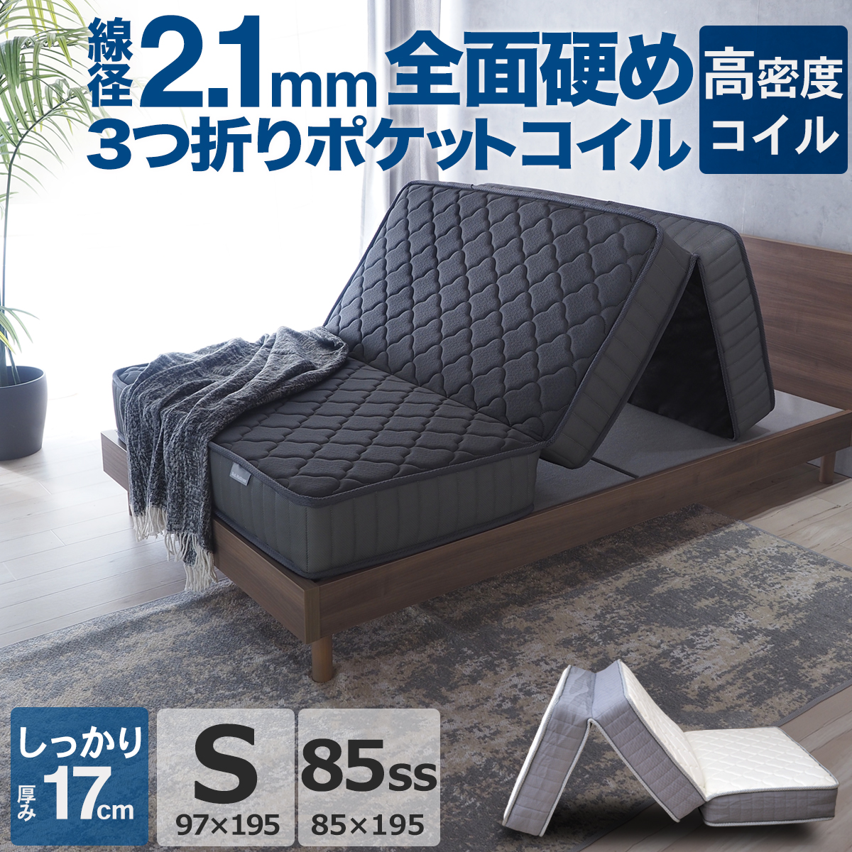 マットレス 3つ折り シングル 85スモールシングル 折りたたみ ポケットコイル ベッドマット ZH133P3N 体圧分散 コイル数450個
