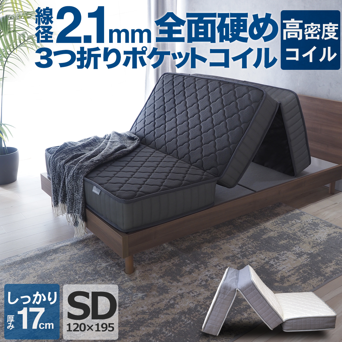 マットレス セミダブル 折りたたみ 三つ折り ポケットコイル ベッド用 ZH133P3N コイル数570個