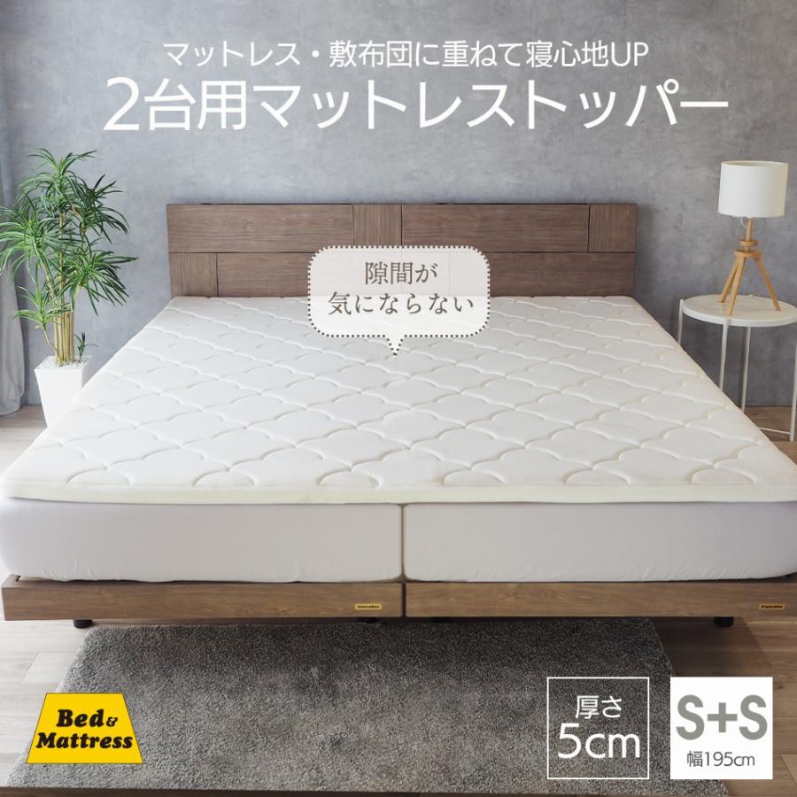マットレストッパー 2台用サイズ シングル+シングル (幅195cm×195cm×5cm) マットレス 170N 高反発 ホワイト グレー S+S−EN005TF トッパー トッパー