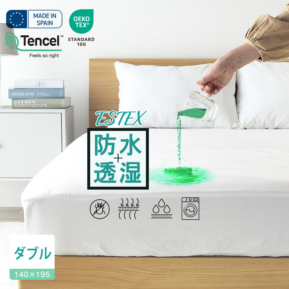 防水シーツ ダブル ボックスシーツ マットレスカバー マットレスプロテクター スペイン直輸入 防水 通気性 水を通さない ESTEX