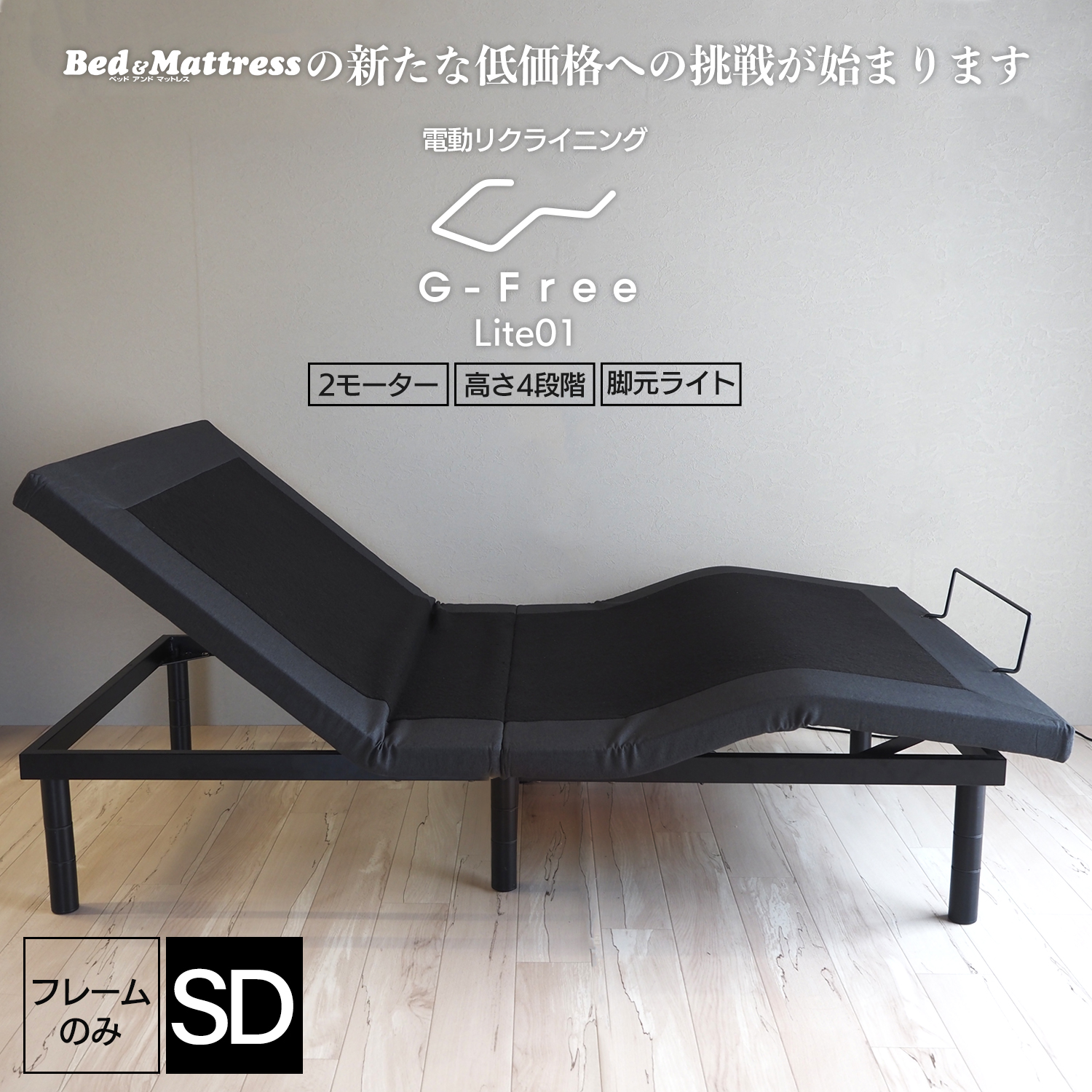 ベッドフレーム 電動ベッド セミダブル アジャスタブルベッド 単品 電動リクライニング ベッド アジャスタブルベース G-Free Lite フレームのみ