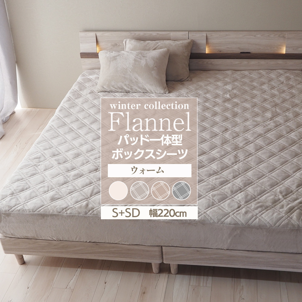 ボックスシーツ 兼 ベッドパッド パッド一体型シーツ ウォーム シングル+セミダブル(幅220cm)あったか 冬用 フランネル 敷きパッド パッドシーツ BP20