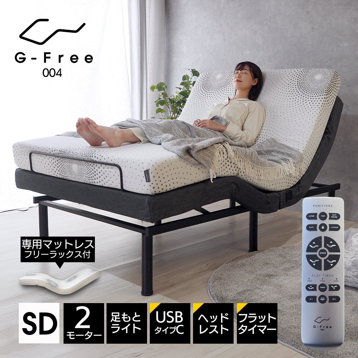 リクライニングベッド 電動ベッド セミダブル 2モーター 電動リクライニングベッド フリーラックス G-FREE004 アジャスタブルベッド
