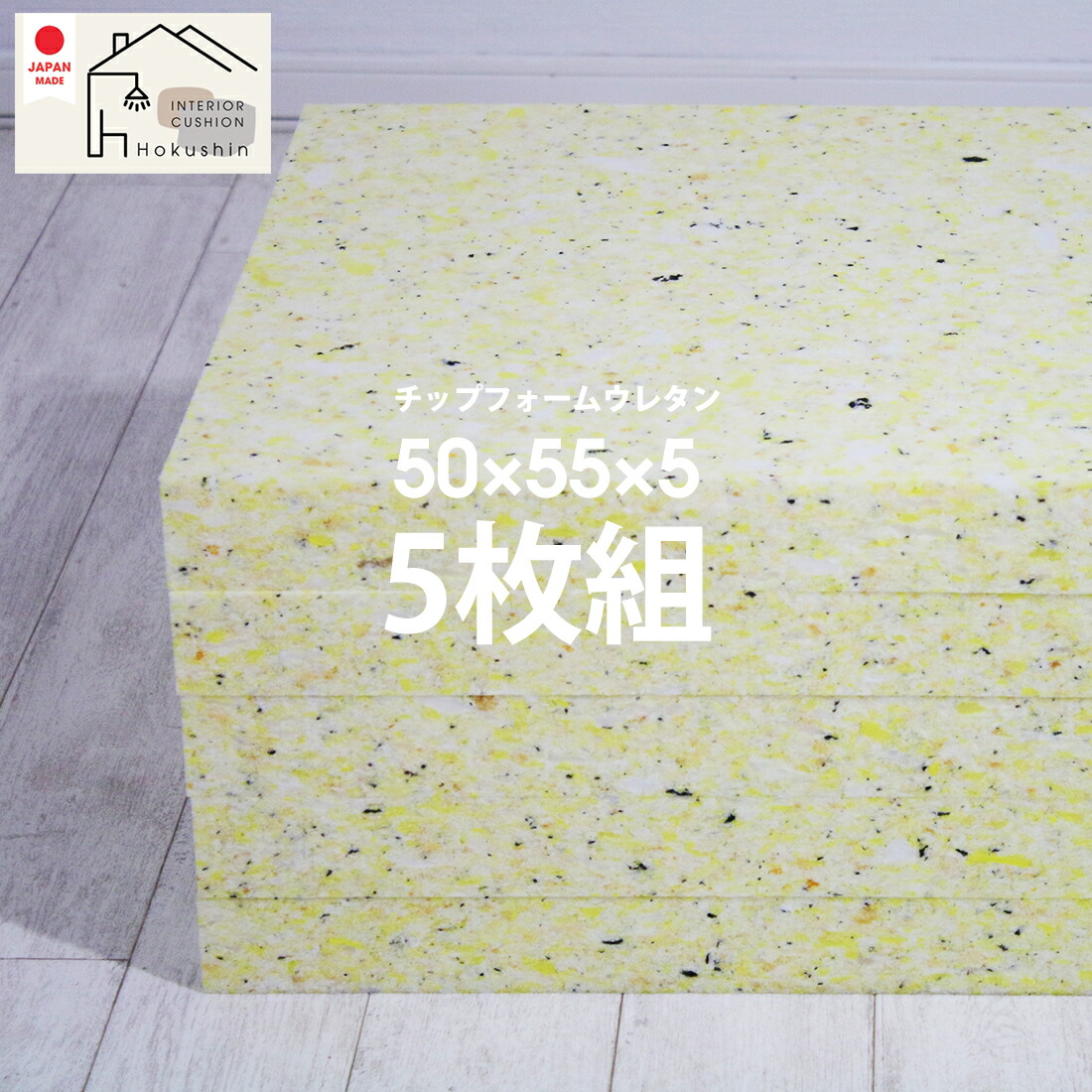 ウレタンチップ ヌード 5枚組 50×55×5cm 送料無料 厚さ5cm 中材 55×59カバー用 座布団 銘仙伴