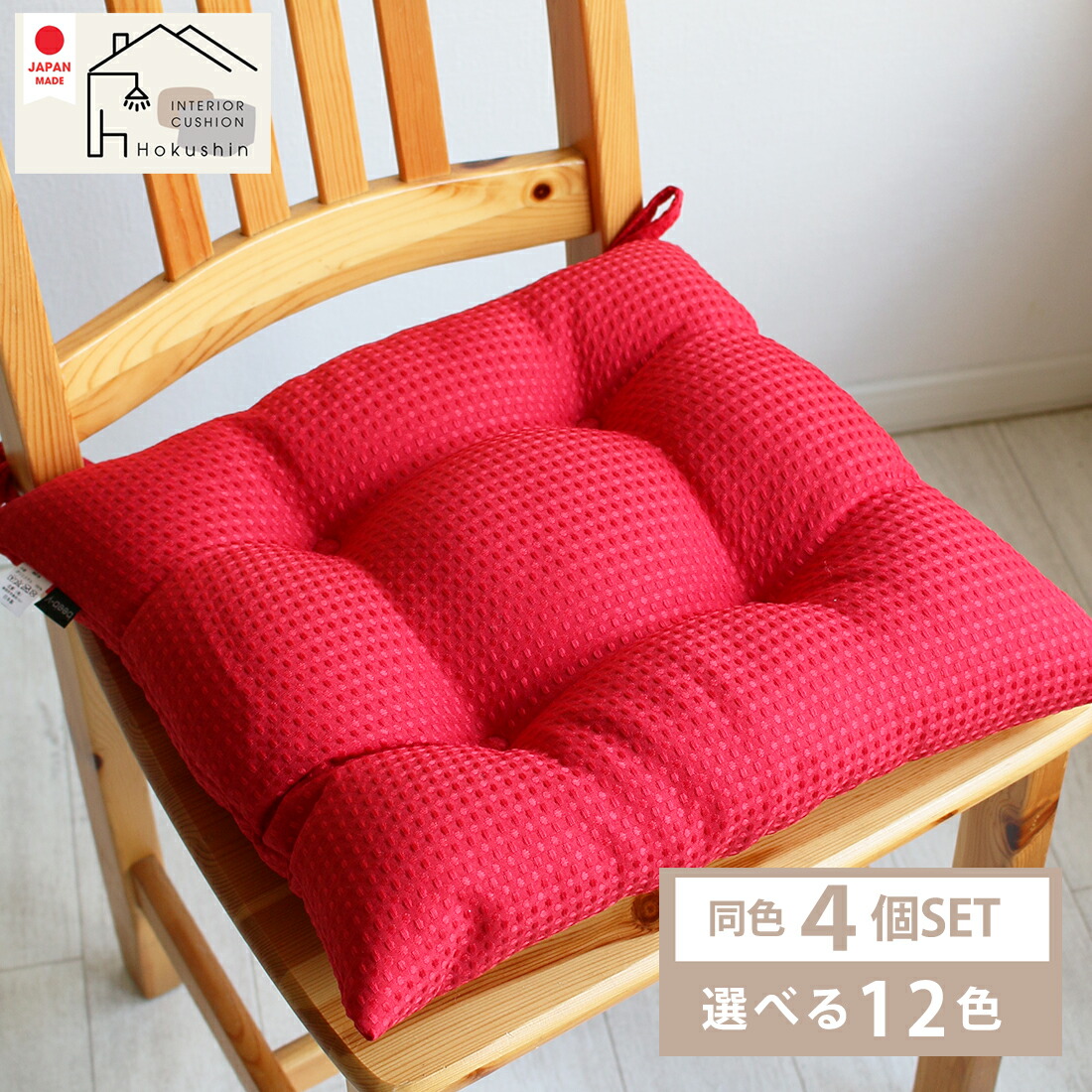 同色4枚セット ひも付き シートクッション ワッフル生地 約42×42 シンプル おしゃれ 撥水加工 送料無料 佐川またはヤマト便 htset