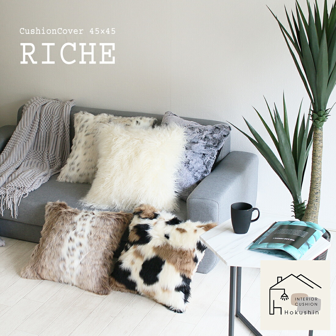 クッションカバー 45×45 リッシュ ファー おしゃれ フェイクファー ボア メール便 送料無料 ギフト