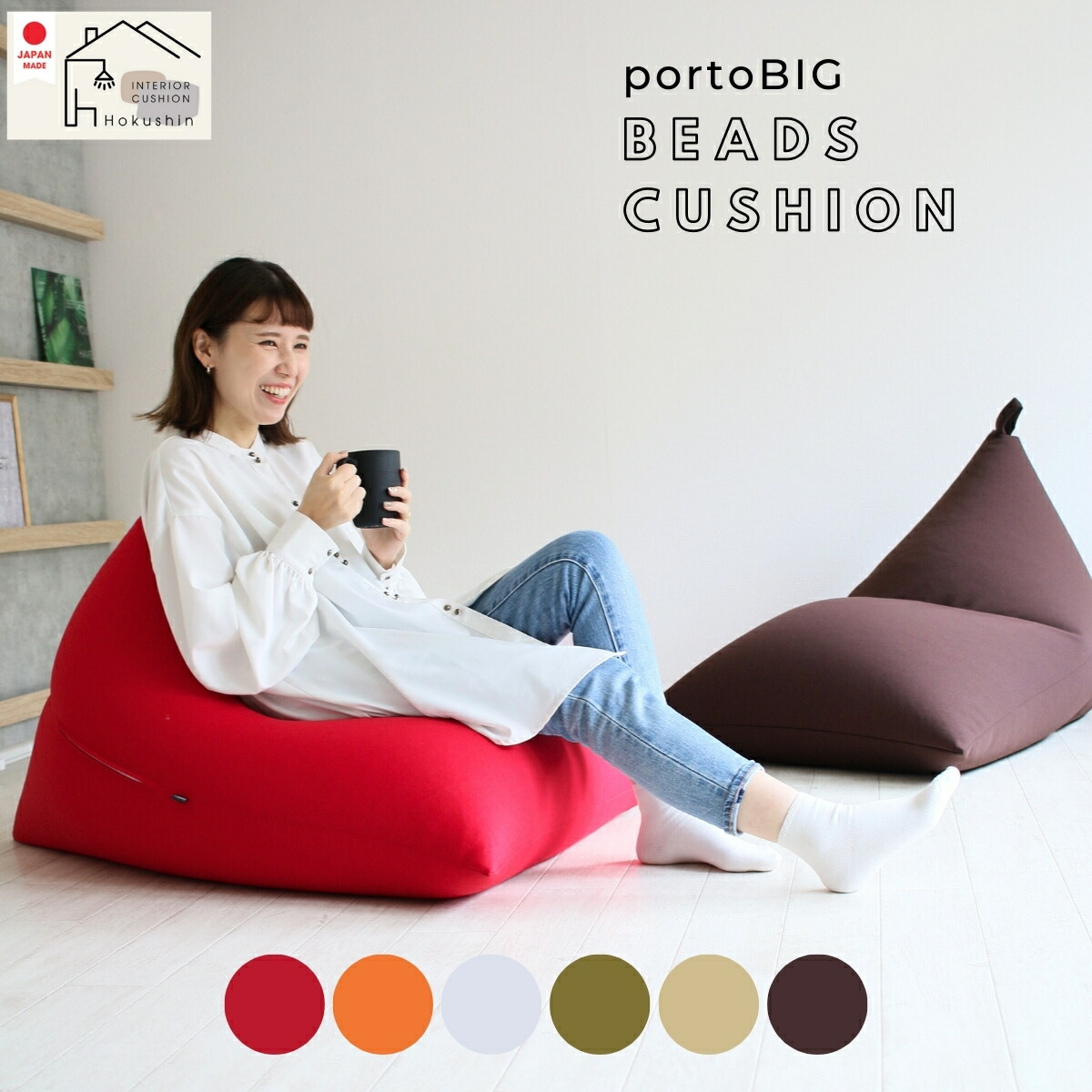 | 説明 | 日本製ビーズクッション【ポルトBIG】 全面に程よく伸びるスムースニット生地を使用したビーズクッション。 中身は日本製大粒ビーズでカチッとしっかりとした座り心地。 沈み込みすぎるビーズクッションが苦手な方にオススメです。 持ち運びがしやすいループ付き。 ビーズの補充も可能なので長くご使用いただけます。 カバー付きではありません。ビーズ直入れタイプのビーズクッションです。 |