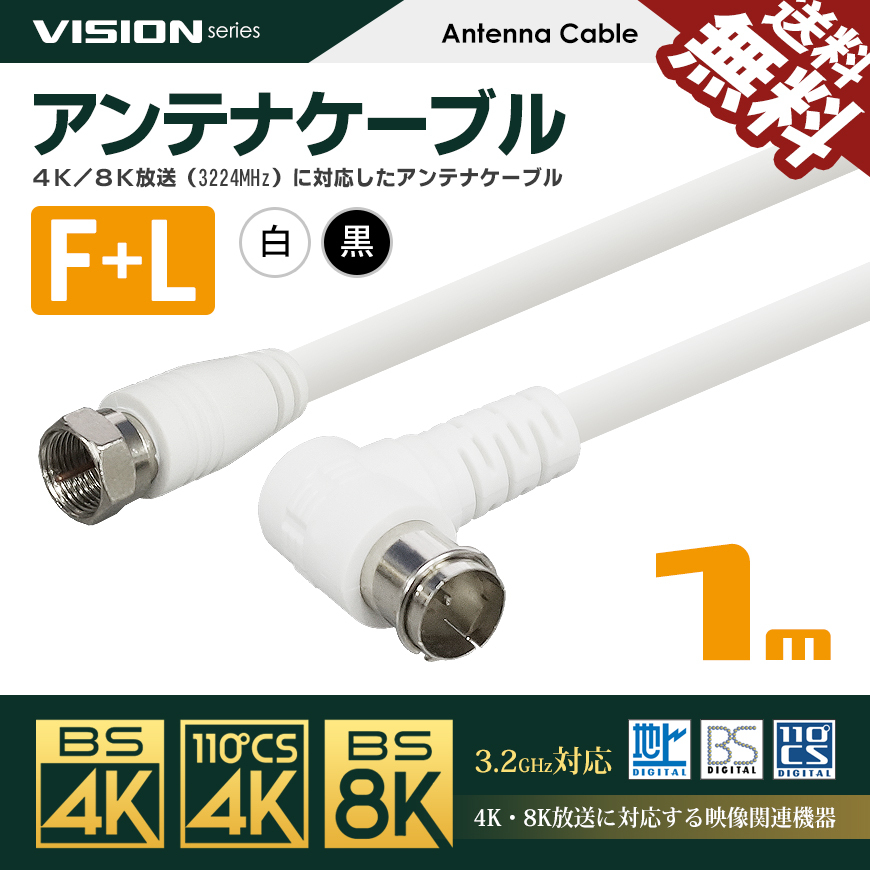 VISION アンテナケーブル 同軸ケーブル 1m 4K8K対応 S-4C-FB 地上デジタル 地デジ BS CS TV テレビ 白/黒 FL-1M 国内検査後 パッケージング