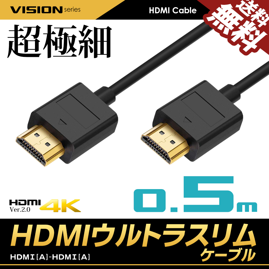 VISION HDMIケーブル ウルトラスリム 0.5m 50cm 比べてみて 超極細 直径約3mm Ver2.0 4K 60Hz Nintendo switch PS4 PS5 XboxOne