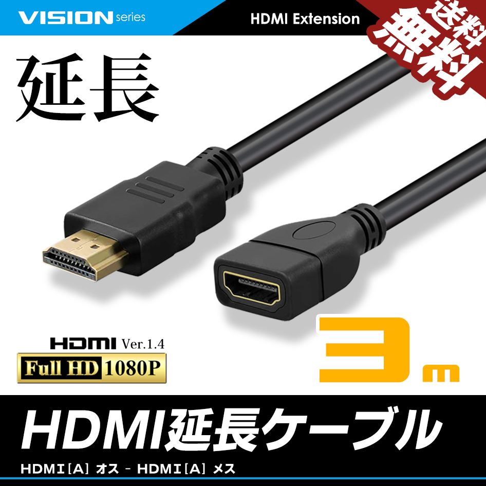 VISION HDMI延長ケーブル 3m 3メートル ハイスピード Ver1.4 FullHD 3D フルハイビジョン 1080P オス-メス