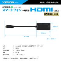 VISION MHL-HDMI 変換アダプター Xperia Z5 Z4 Z3 Arrows F-05E F-03G F-02F GALAXY Tab など スマホ → TV 画面出力