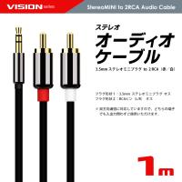 VISION オーディオケーブル 3.5mm ステレオミニプラグ to 2RCA(赤/白)変換 AUX 金メッキ オス 1m